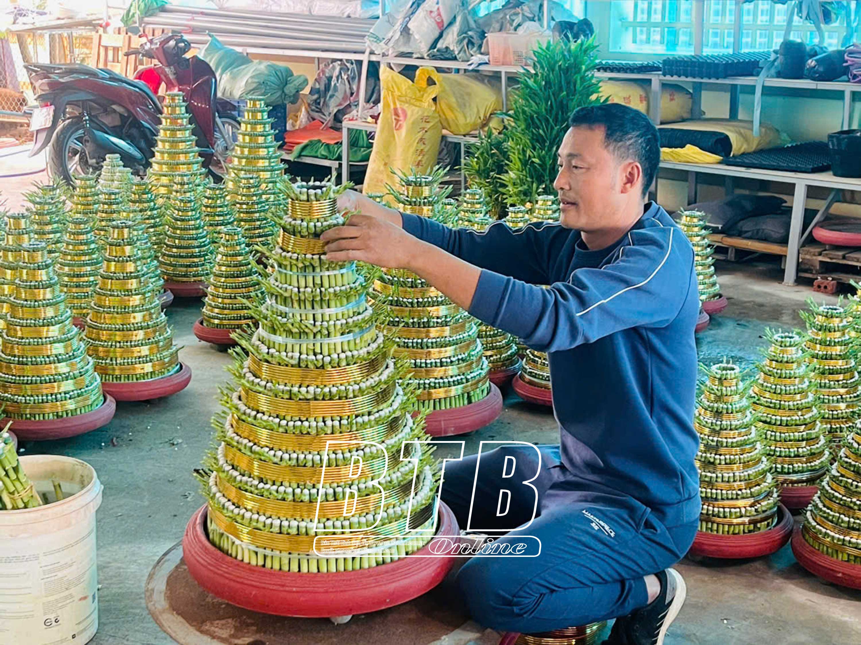 Mỗi năm gia đình chị Trần Thị Tuyết, thôn Đồng Hàn xuất bán hàng nghìn tháp phát lộc và lộc bình.