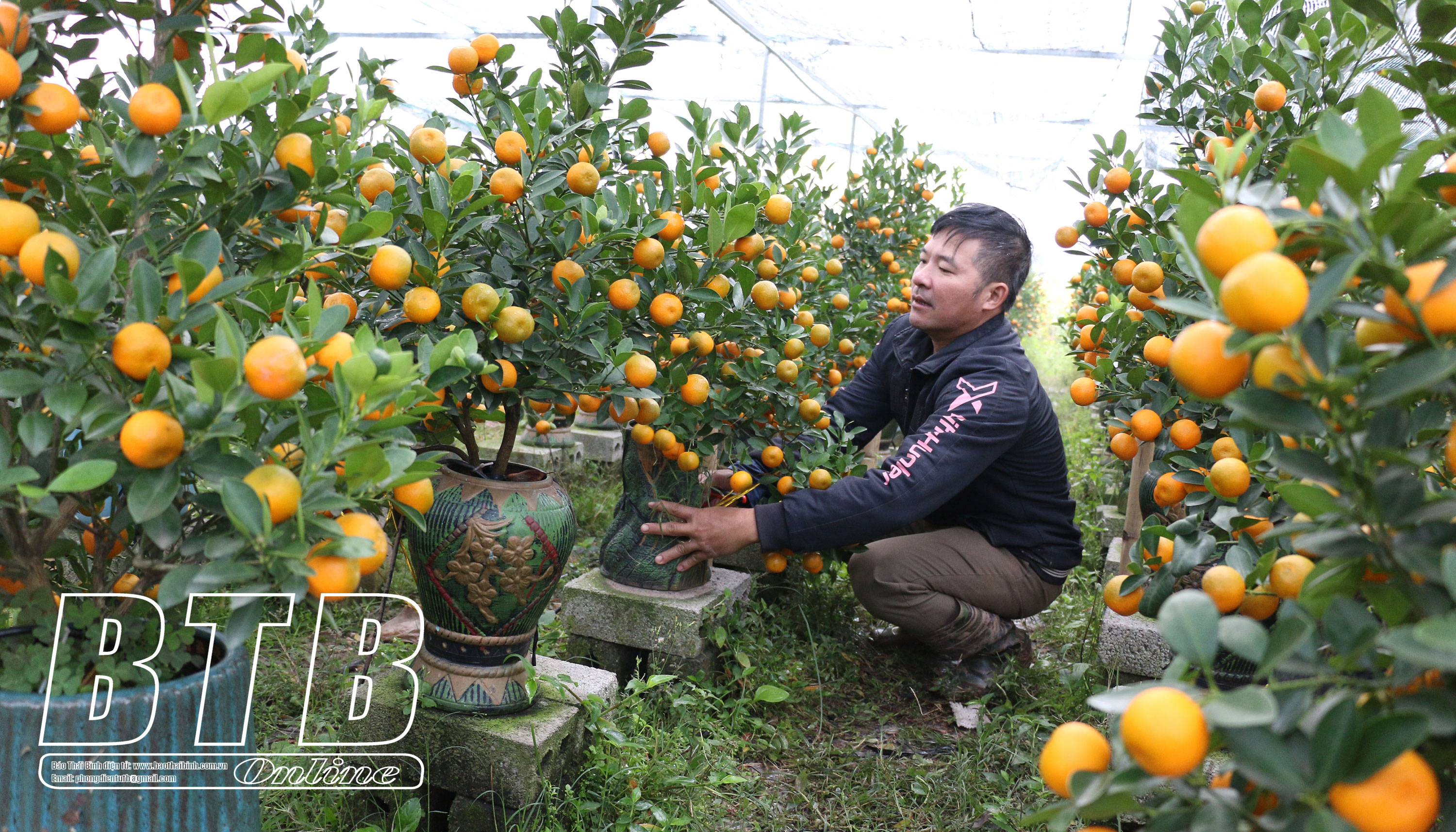 Anh Ngọc cho hay: Gia đình tôi trồng quất đến nay được hơn 10 năm. Trước đây, tôi trồng chủ yếu quất thế, quất lùm. Khi thị trường đầu ra ổn định, nắm bắt nhu cầu của người chơi quất cảnh, tôi chuyển sang trồng quất chum, quất bonsai. Ngoài học hỏi từ các nhà vườn có tiếng, tôi tự mày mò, cắt ghép và uốn cành theo các dáng, thế khác nhau. So với trồng quất vườn thì trồng quất chum, quất bonsai vất vả hơn, như chăm con thơ từ lúc chăm sóc cây con ngoài đất, chuyển lên chậu và tạo thế. Tôi thường xuyên phải ra vườn kiểm tra độ ẩm của đất, chất dinh dưỡng cho cây; quan sát sự phát triển của cây qua từng ngày, từng tháng để biết và điều chỉnh thêm bớt chất dinh dưỡng cho phù hợp. Đến thời điểm hiện tại, hơn 300 chậu quất cảnh trong vườn đều cho quả to, đều, đẹp, nếu tính với giá bán thấp nhất là 300.000 đồng/chậu thì gia đình cũng thu về gần 100 triệu đồng.