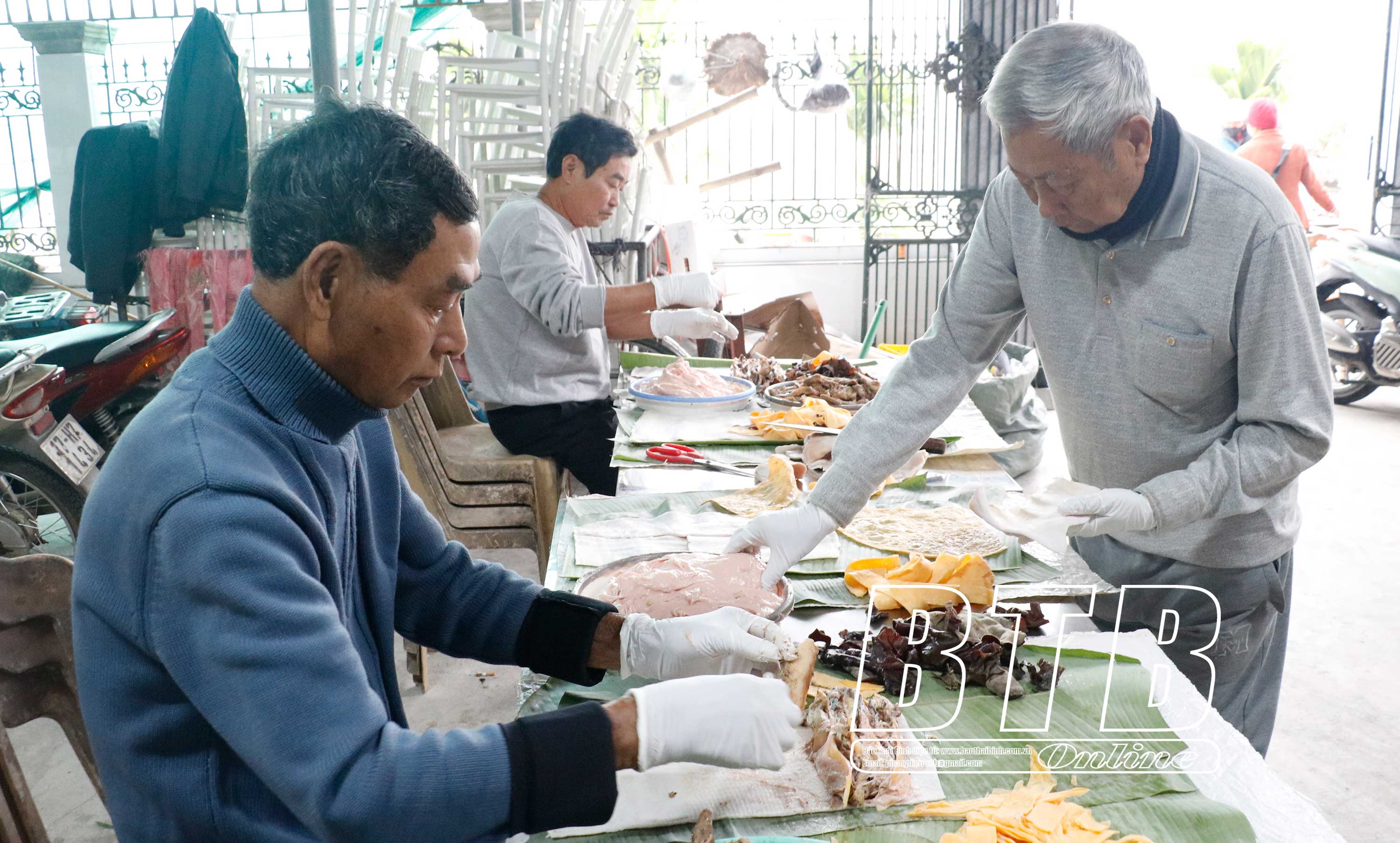 Mỗi dịp tết, gia đình anh Khải phải thuê thêm nhiều lao động đến để gói giò, chả.