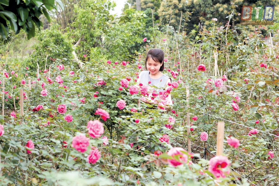 Đến thăm vườn hồng đua nhau khoe sắc của chị Hiên, ít ai nghĩ rằng chỉ gần một năm trước nơi đây là bãi đất bỏ hoang cỏ mọc um tùm. Bằng tình yêu và niềm đam mê, chị Hiên không chỉ biến mảnh vườn của gia đình thành một vườn hồng rực rỡ với 200 loại hồng khác nhau mà còn mở rộng khu vực trồng hoa sang vùng đất mới (xã Việt Hùng) để vươn tới ước mơ xa hơn.