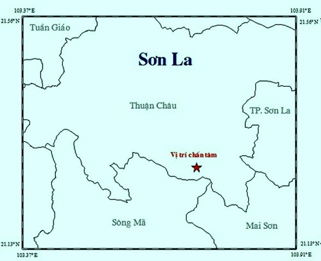 Cùng ngày, vào lúc 3 giờ 59 phút, một trận động đất khác có độ lớn 3,9 độ Richter cũng đã xảy ra tại huyện Thuận Châu, tỉnh Sơn La.