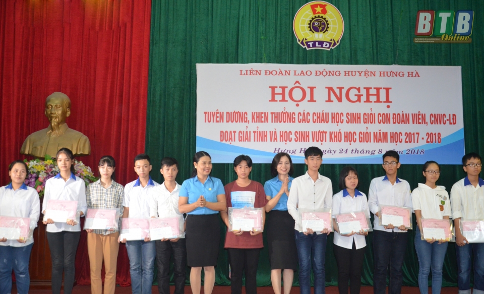 Tại buổi gặp mặt, lãnh đạo Liên đoàn Lao động tỉnh, lãnh đạo huyện Hưng Hà, Liên đoàn Lao động huyện tặng quà cho 75 cháu học sinh đạt thành tích tiêu biểu và học sinh vượt khó đạt thành tích cao trong học tập; trao 5 xe đạp cho học sinh có hoàn cảnh khó khăn do Ngân hàng Thương mại Cổ phần Công Thương Việt Nam tài trợ thông qua Quỹ Bảo trợ trẻ em Công đoàn Việt Nam.