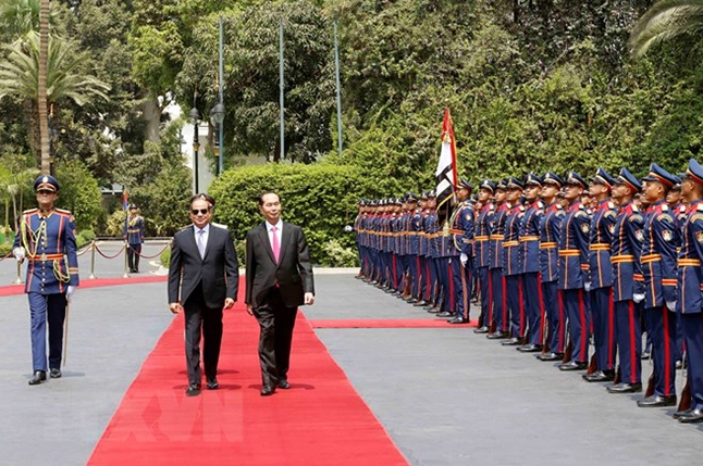 Tổng thống Abdel Fattah Al Sisi nhiệt liệt chào mừng Chủ tịch nước Trần Đại Quang lần đầu tiên thăm cấp Nhà nước tới Ai Cập, khẳng định đây là sự kiện chính trị quan trọng, tạo động lực đưa quan hệ hữu nghị, truyền thống và hợp tác nhiều mặt giữa hai nước bước vào giai đoạn phát triển mới sâu rộng và hiệu quả. Tổng thống Abdel Fattah el-Sisi khẳng định với vị trí kết nối ba châu lục: châu Á, châu Phi và châu Âu, Ai Cập sẵn sàng làm cầu nối để doanh nghiệp, hàng hóa Việt Nam tiếp cận thị trường Ai Cập; thúc đẩy sớm triển khai Chương trình “Tiêu chuẩn Thương mại Ha-la”, hỗ trợ đào tạo cán bộ của Việt Nam trong lĩnh vực Tiêu chuẩn Ha-la về hàng hóa xuất khẩu sang các thị trường Hồi giáo nói chung, trong đó có Ai Cập; Tăng cường hợp tác song phương trong việc công nhận lẫn nhau về các biện pháp kiểm dịch động, thực vật cho hàng hóa nông sản, thủy hải sản.