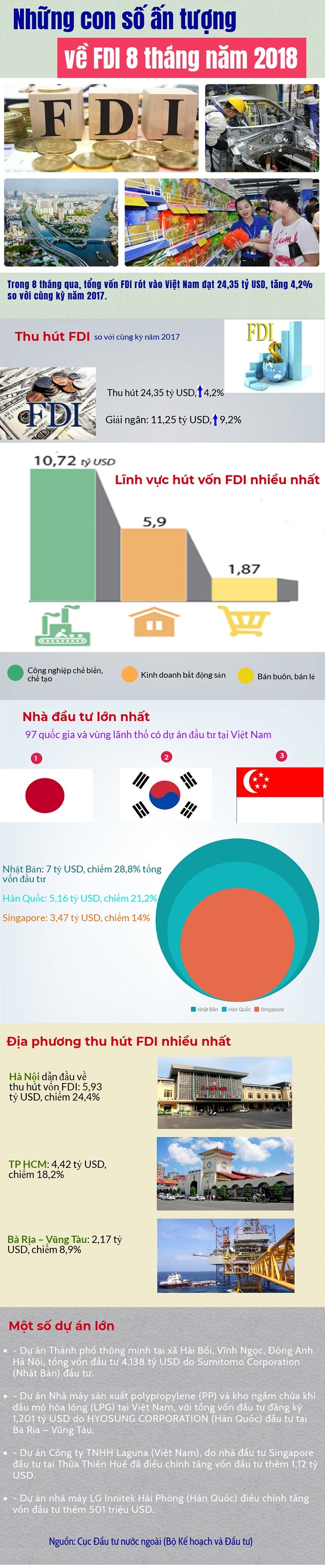 Infographics: Những con số ấn tượng về FDI 8 tháng năm 2018