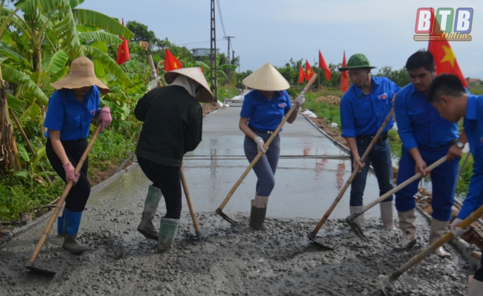 Tham gia bê tông hóa đoạn đường thanh niên thuộc xã Thái Dương (Thái Thụy).