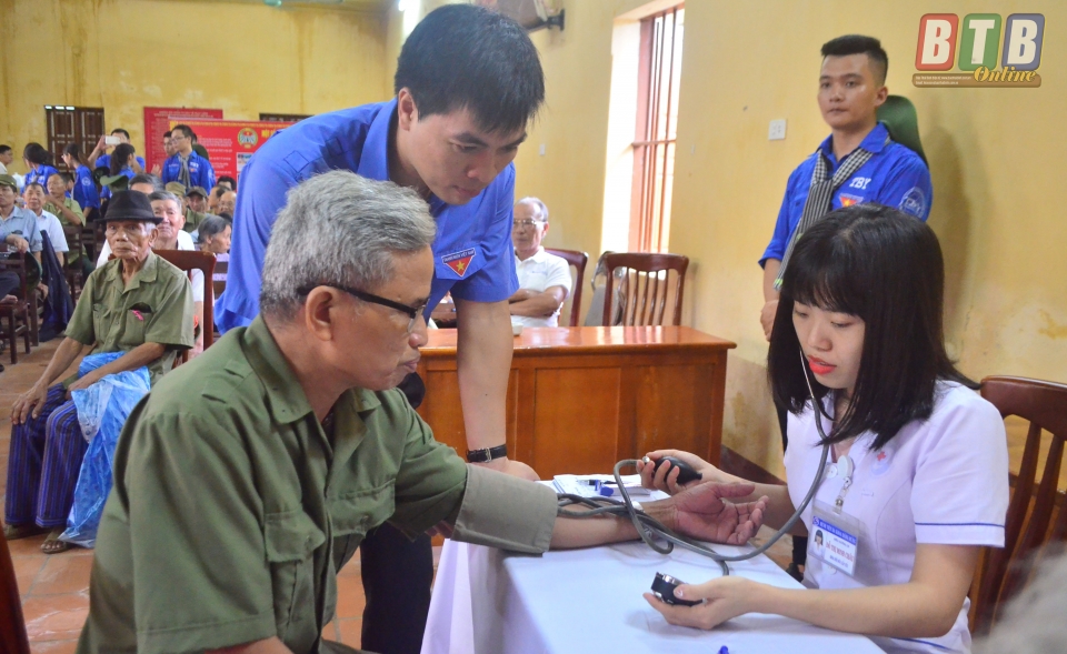 Khám bệnh miễn phí cho đối tượng chính sách xã Trọng Quan (Đông Hưng).