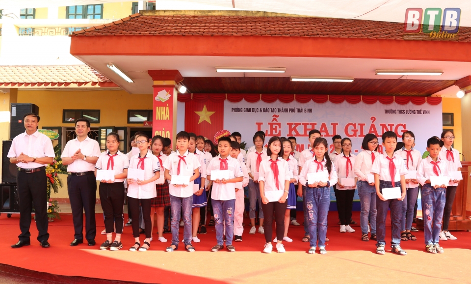 Trong lễ khai giảng năm học mới, các đồng chí lãnh đạo tỉnh đã trao 40 suất học bổng, mỗi suất trị giá 500.000 đồng cho các em học sinh vượt khó, có thành tích học tập tốt, động viên các em tiếp tục nỗ lực trong các năm học tiếp theo.