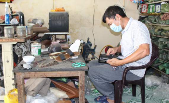Cũng như gia đình ông Hơn, do ảnh hưởng của dịch Covid-19, gia đình anh Vũ Văn Thức, thôn Phố Lầy, xã An Ninh (Quỳnh Phụ) cũng phải đóng cửa cơ sở sản xuất giày dép, cho 12 lao động trực tiếp tại cơ sở nghỉ việc từ đầu tháng 3/2020; đồng thời, đóng cửa hàng bán sản phẩm trong 2 tuần từ ngày 1/4/2020 để thực hiện yêu cầu về cách ly toàn xã hội theo Chỉ thị số 16 của Thủ tướng Chính phủ.