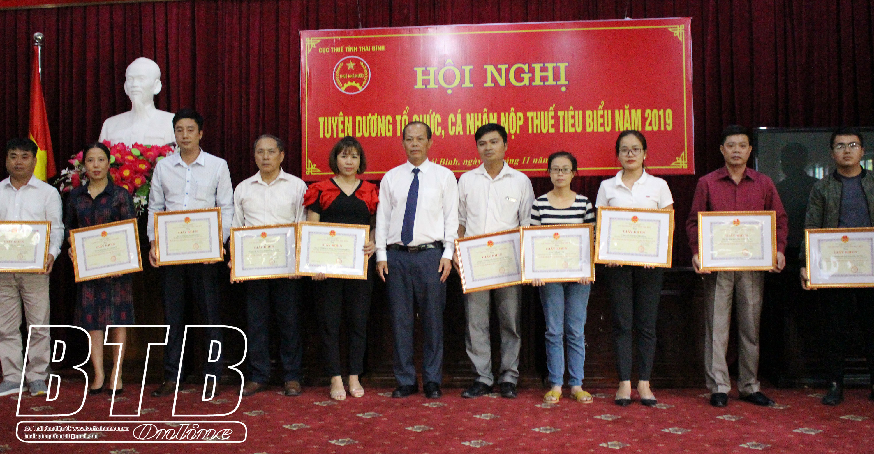 Trong 68 tổ chức, cá nhân nộp thuế tiêu biểu năm 2019 được tuyên dương, khen thưởng tại hội nghị có: 2 doanh nghiệp được Bộ Tài chính tặng bằng khen; 15 doanh nghiệp được UBND tỉnh tặng bằng khen; 12 doanh nghiệp được Tổng cục Thuế tặng giấy khen và 39 doanh nghiệp được Cục Thuế tỉnh tặng giấy khen.