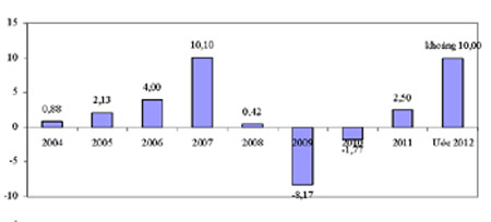 Cán cân thanh toán tổng thể từ năm 2004 đến nay (tỷ USD) Nguồn: Ngân hàng Nhà nước