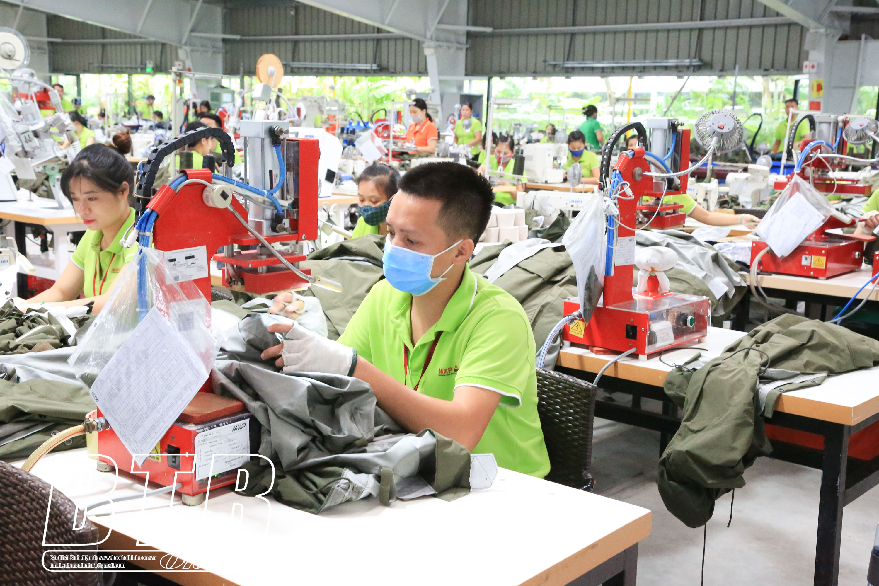 Công ty Cổ phần Sản xuất hàng thể thao Chi nhánh Thái Bình tích cực duy trì sản xuất để có số nộp cho ngân sách nhà nước. Ảnh Thành Tâm