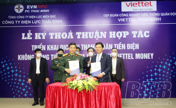 Thời gian qua, thanh toán tiền điện không dùng tiền mặt qua ứng dụng của Viettel Thái Bình cung cấp đã đạt trên 204.032 hóa đơn, với số tiền thu qua ứng dụng khoảng 76 tỷ đồng. Công ty Điện lực Thái Bình tiếp tục cam kết sẽ phối hợp chặt chẽ với Viettel Thái Bình đẩy mạnh kênh thanh toán tiền điện không dùng tiền mặt qua kênh Viettel đến khách hàng sử dụng điện trong tỉnh, góp phần số hóa trong lĩnh vực thu tiền điện.