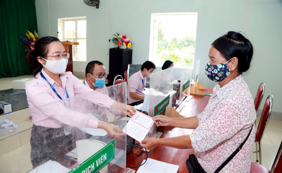 Giao dịch vay vốn ưu đãi tại Điểm giao dịch của Ngân hàng chính sách xã hội.