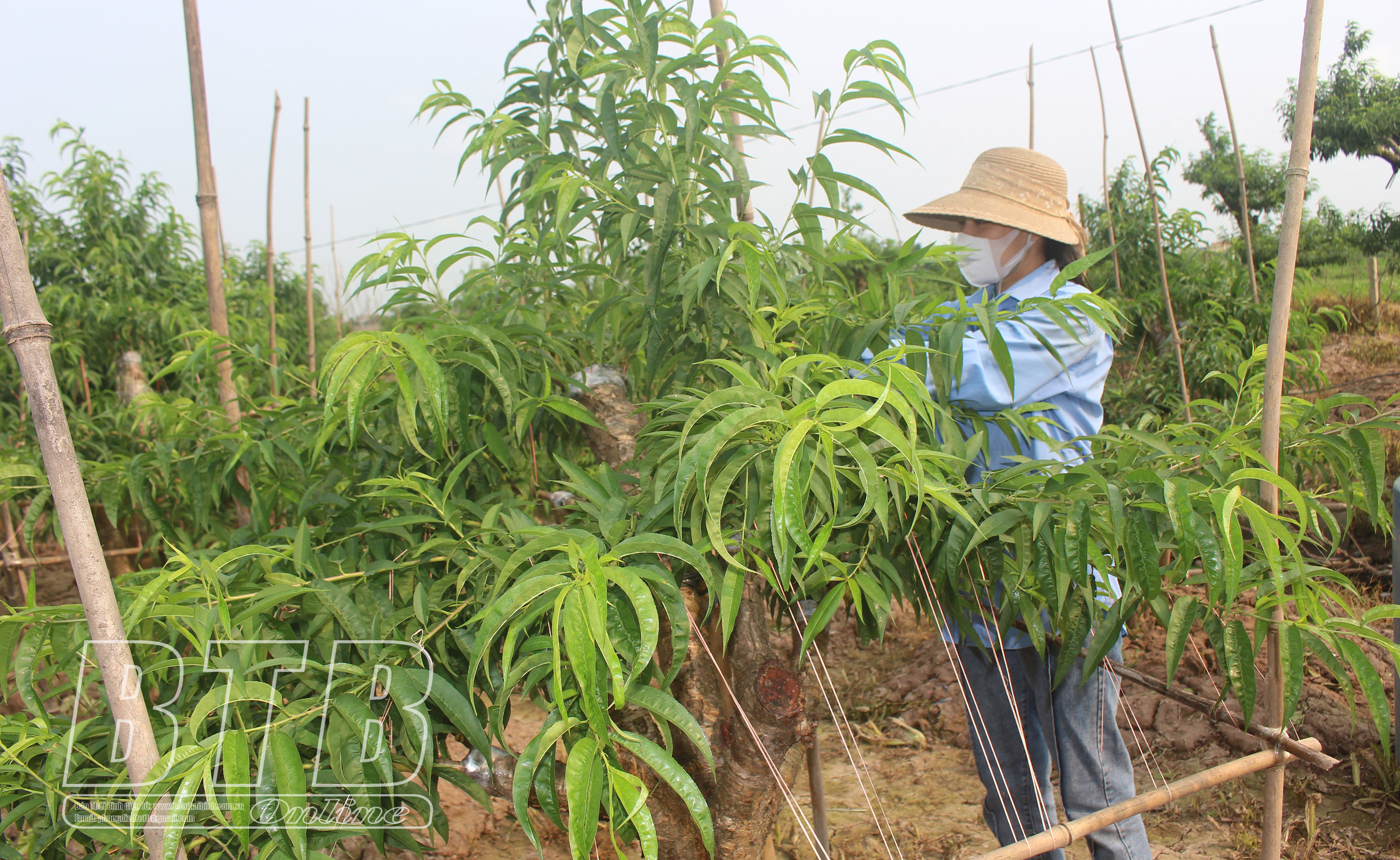 Nguồn vốn tín dụng ưu đãi của Chính phủ giúp nông dân phường Hoàng Diệu (thành phố Thái Bình) phát triển mô hình trồng cây đào đem lại hiệu quả kinh tế cao.