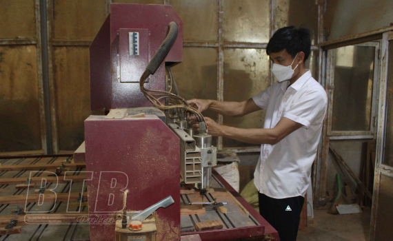 Công ty TNHH Đồ gỗ mỹ nghệ Khởi Tiếp (thôn Thái, xã Nguyên Xá) đầu tư máy móc phát triển nghề mộc truyền thống từ nguồn vốn của Agribank Vũ Thư.