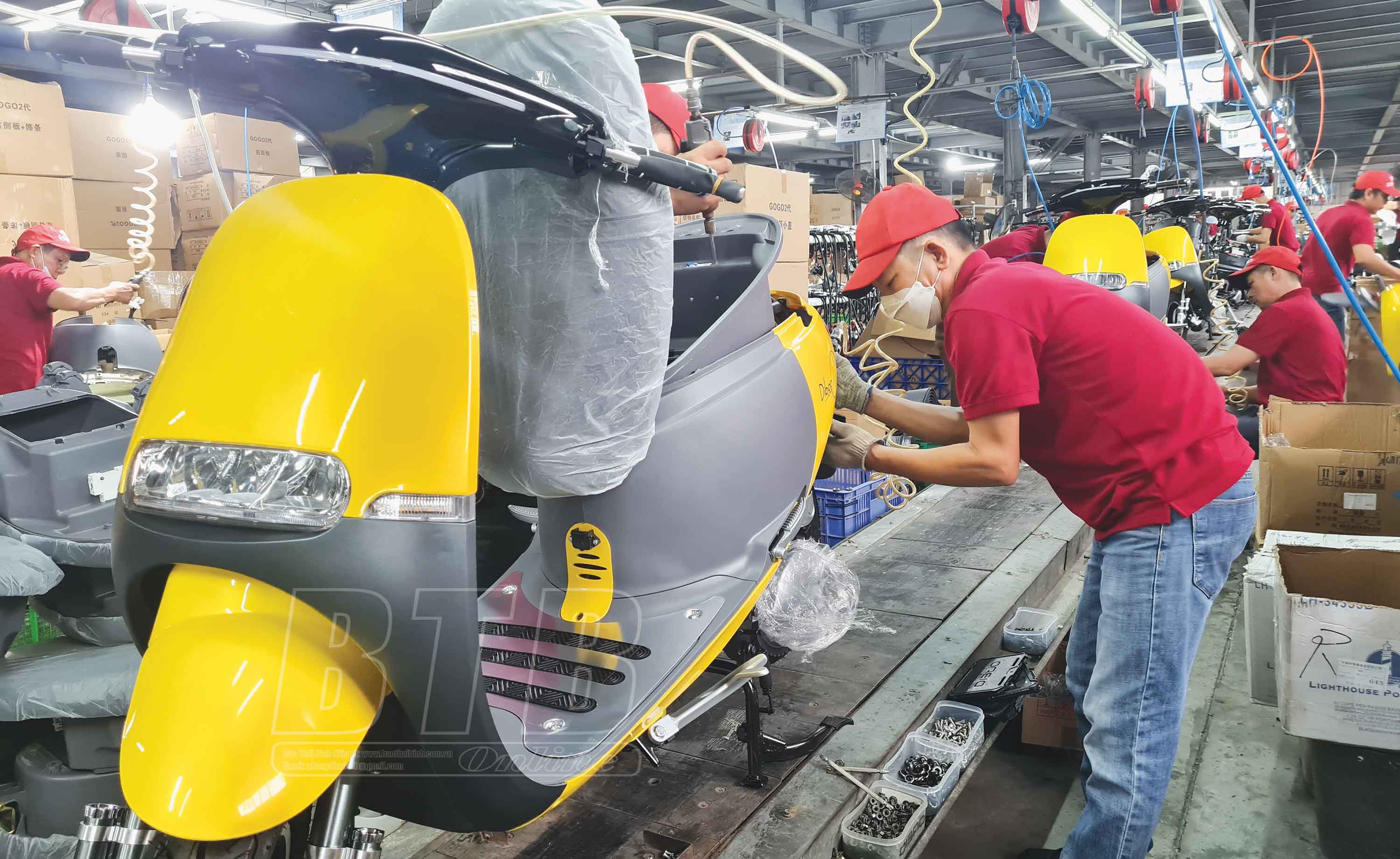 Dây chuyền sản xuất, lắp ráp xe máy điện của Công ty TNHH Thương mại Tấn Thành, (khu công nghiệp Phúc Khánh, thành phố Thái Bình).