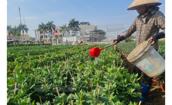 Hội viên phụ nữ xã Vũ Chính chăm sóc hoa, cây cảnh.