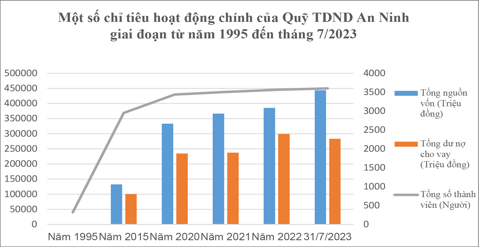Trong bối cảnh đó, Quỹ TDND An Ninh luôn nhận được sự quan tâm lãnh đạo, chỉ đạo của Ngân hàng Nhà nước Việt Nam Chi nhánh tỉnh và cấp ủy, chính quyền các địa phương. Chính vì thế, từ quy mô ban đầu chỉ có 43 thành viên, đến hết tháng 7/2023 Quỹ đã phát triển lên 3.600 thành viên, hoạt động ở địa bàn 3 xã: An Ninh, An Cầu và An Vũ. Tổng nguồn vốn huy động đạt gần 410 tỷ đồng, tăng 920 lần so với thời điểm 31/12/1995; tổng dư nợ cho vay đạt hơn 280 tỷ đồng với 900 khách hàng đang vay vốn, tăng 585 lần so với thời điểm 31/12/1995.