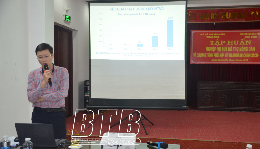 Gần 100 học viên là chi hội trưởng, tổ trưởng tổ tiết kiệm và vay vốn Ngân hàng Chính sách xã hội; tổ vay vốn Ngân hàng Nông nghiệp và Phát triển nông thôn được giảng viên Quỹ hỗ trợ nông dân Trung ương và Ngân hàng Chính sách xã hội tỉnh truyền đạt nghiệp vụ công tác xây dựng, quản lý, điều hành, cho vay vốn quỹ hỗ trợ nông dân; nghiệp vụ tín dụng tổ tiết kiệm và vay vốn Ngân hàng Chính sách xã hội và tổ vay vốn Ngân hàng Nông nghiệp và Phát triển nông thôn; triển khai Nghị định số 37 của Chính phủ về thành lập, tổ chức và hoạt động của quỹ hỗ trợ nông dân...
