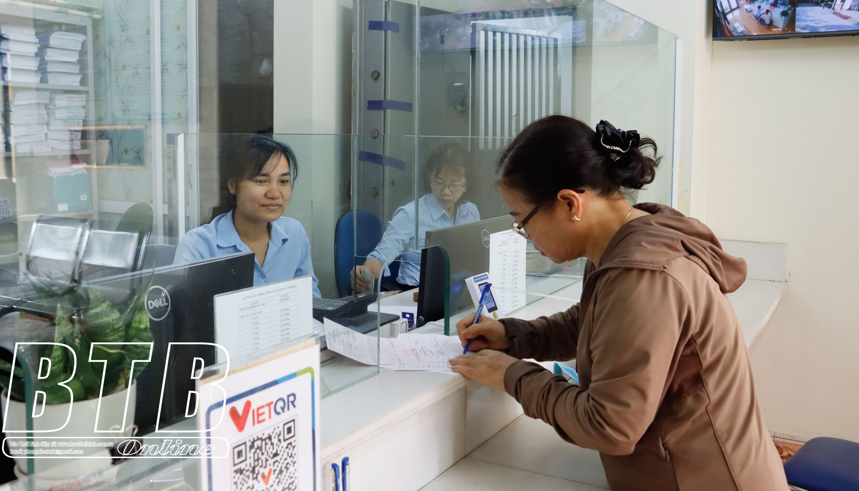 Nhân viên quầy giao dịch Quỹ Tín dụng nhân dân An Ninh phục vụ khách hàng tận tình, chu đáo.