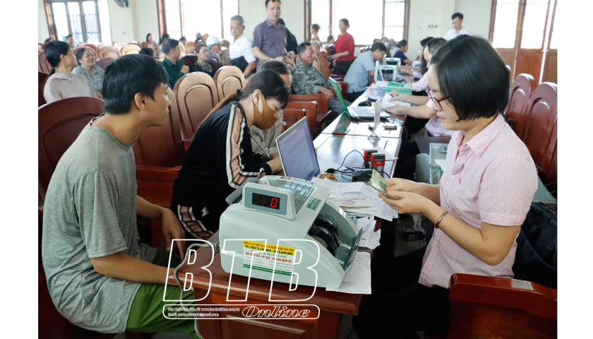 Cán bộ Phòng Giao dịch Ngân hàng Chính sách xã hội huyện Quỳnh Phụ giải ngân vốn tín dụng cho khách hàng.
