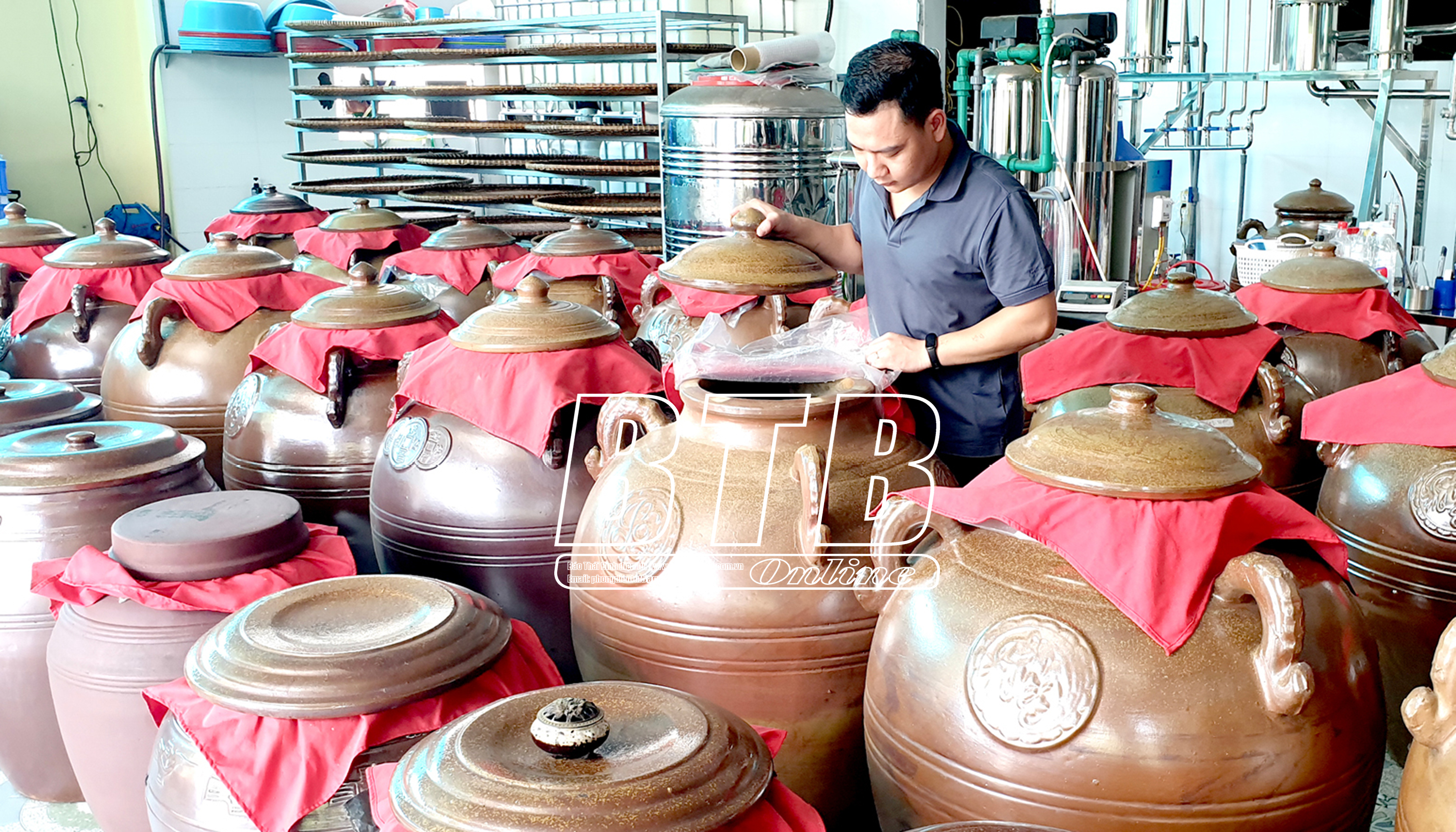 Được Phòng giao dịch Ngân hàng Chính sách xã hội huyện Quỳnh Phụ tiếp vốn, anh Đỗ Nhật Anh đã xây dựng thành công sản phẩm rượu nếp OCOP 3 sao làng Rèm.