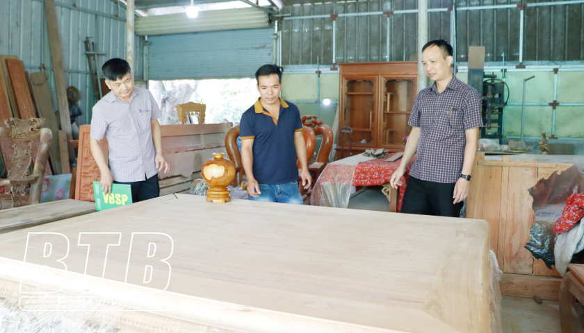 Cán bộ Ngân hàng Chính sách xã hội Chi nhánh tỉnh kiểm tra khách hàng sử dụng vốn vay phát triển kinh tế tại xã Quỳnh Hưng (Quỳnh Phụ).