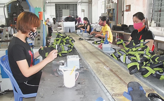 Xưởng sản xuất giày dép của ông Đỗ Thanh Hữu đạt doanh thu hàng tỷ đồng/năm.