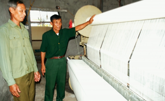 Chúng tôi đến thăm gia đình cựu chiến binh (CCB) Vũ Văn Nguyện ở thôn Phúc Duyên đúng lúc cán bộ, hội viên Hội CCB xã đang cùng nhau chia sẻ kinh nghiệm sử dụng vốn vay, cách đầu tư sản xuất hiệu quả. Những năm trước đây, gia đình ông Nguyện làm nghề dệt truyền thống nhưng chủ yếu sử dụng máy dệt thủ công, năng suất lao động thấp, giá trị thu nhập cũng không cao. Năm 2012, gia đình ông được Hội CCB xã Văn Lang bình xét cho vay vốn phát triển sản xuất từ nguồn vốn vay tín chấp với Ngân hàng Chính sách xã hội huyện Hưng Hà.