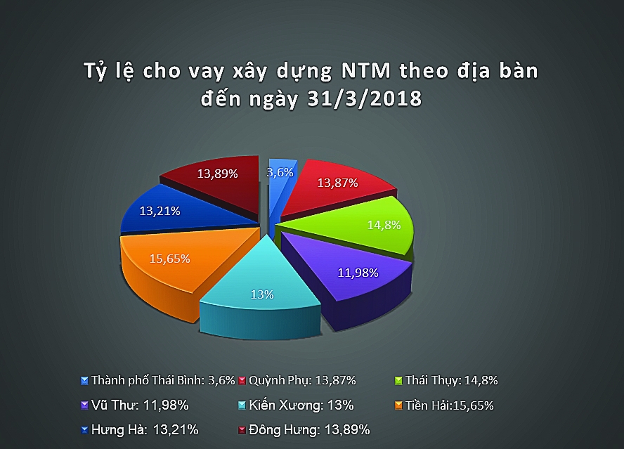 Năm 2017, UBND các cấp đã chuyển 7,3 tỷ đồng sang Ngân hàng CSXH để cho vay hộ nghèo và các đối tượng chính sách khác (cấp tỉnh 5 tỷ đồng, các huyện, thành phố 2,3 tỷ đồng). Ngoài ra, Ngân hàng CSXH Chi nhánh tỉnh còn chỉ đạo các đơn vị phối hợp với các hội, đoàn thể, ban quản lý tổ tiết kiệm và vay vốn thực hiện rà soát nhu cầu vay vốn của hộ nghèo, hộ cận nghèo trên cơ sở danh sách được cấp có thẩm quyền phê duyệt để bố trí nguồn vốn một cách kịp thời. Đồng thời, phối hợp với Văn phòng Điều phối xây dựng NTM tỉnh đăng ký hỗ trợ xây dựng NTM đối với xã Thụy Dũng (Thái Thụy) và huyện Tiền Hải.