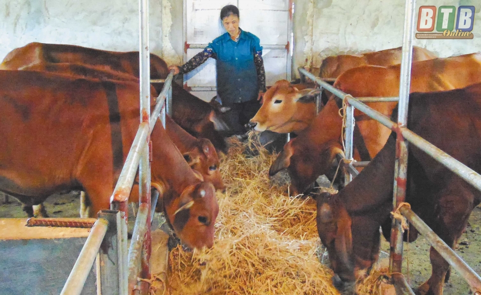 Gia đình anh Nguyễn Văn Lâm (thôn Nghĩa, xã Tây Lương) phát triển chăn nuôi bò từ nguồn vốn tín dụng chính sách.