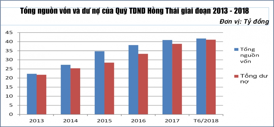 Nhờ chú trọng nâng cao chất lượng và hiệu quả hoạt động, Quỹ TDND Hồng Thái đã khẳng định được vai trò, thương hiệu của mình, đóng góp tích cực vào phát triển kinh tế - xã hội, đồng thời đẩy lùi nạn cho vay nặng lãi ở địa phương. Đến ngày 30/6, tổng nguồn vốn hoạt động của Quỹ đạt 41,717 tỷ đồng, tăng 2,07% so với thời điểm 31/12/2017, trong đó nguồn vốn huy động đạt 39,805 tỷ đồng; tổng dư nợ cho vay đạt 41,05 tỷ đồng, tăng 5,85% so với thời điểm 31/12/2017, trong đó cho vay nông nghiệp 515 triệu đồng, cho vay kinh doanh dịch vụ ngành nghề 3,28 tỷ đồng và cho vay khác 37,255 tỷ đồng.