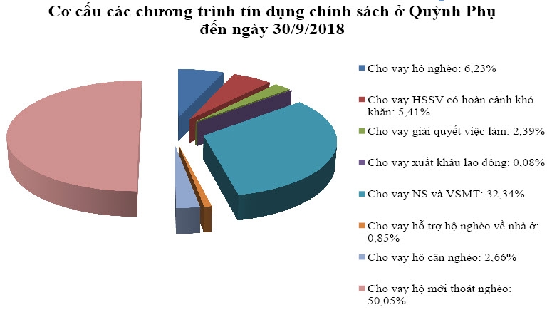 Triển khai thực hiện có hiệu quả các giải pháp, người nghèo và các đối tượng chính sách trên địa bàn huyện Quỳnh Phụ đã sớm được tiếp cận nguồn vốn tín dụng ưu đãi của Chính phủ, từ đó có điều kiện phát triển kinh tế, nâng cao thu nhập cho gia đình. Đến ngày 30/9, Phòng giao dịch Ngân hàng CSXH huyện Quỳnh Phụ đang cho vay 8 chương trình tín dụng ưu đãi của Chính phủ với tổng dư nợ cho vay đạt 374,006 tỷ đồng, cho 13.424 khách hàng vay, tỷ lệ nợ xấu chiếm 0,04% tổng dư nợ.