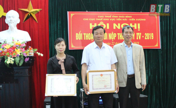 Nhân dịp này, Chi cục Thuế khu vực Tiền Hải - Kiến Xương trao giấy khen của Tổng cục Thuế cho các đơn vị đã có thành tích hoàn thành tốt nghĩa vụ nộp thuế năm 2018.