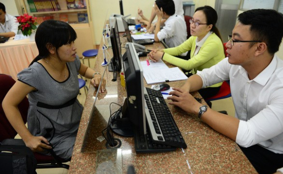 Cán bộ thuế quận 1 - Cục Thuế TP. HCM hướng dẫn người nộp thuế quyết toán thuế thu nhập cá nhân. Ảnh: Tuổi trẻ.