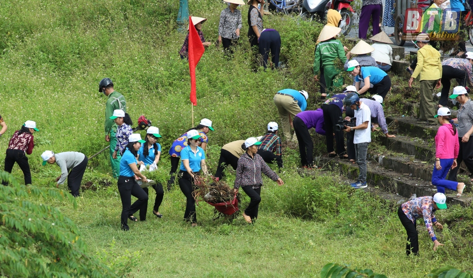 Ngay sau lễ mít tinh các tổ chức đoàn thể tham gia làm vệ sinh môi trường hai bên bờ sông Trà lý.