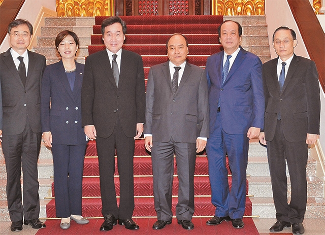 Thủ tướng Nguyễn Xuân Phúc, Thủ tướng Hàn Quốc Li Nác Yên và các đại biểu. Ảnh: TRẦN HẢI