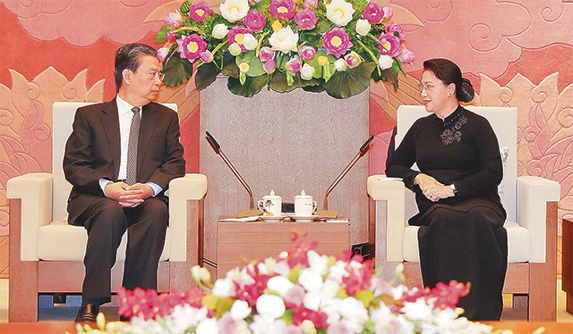 Chủ tịch QH Nguyễn Thị Kim Ngân tiếp đồng chí Triệu Lạc Tế, Ủy viên Thường vụ Bộ Chính trị,