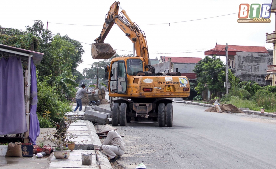 Nhà thầu thi công bó vỉa đoạn qua địa phận xã Phúc Khánh (Hưng Hà).