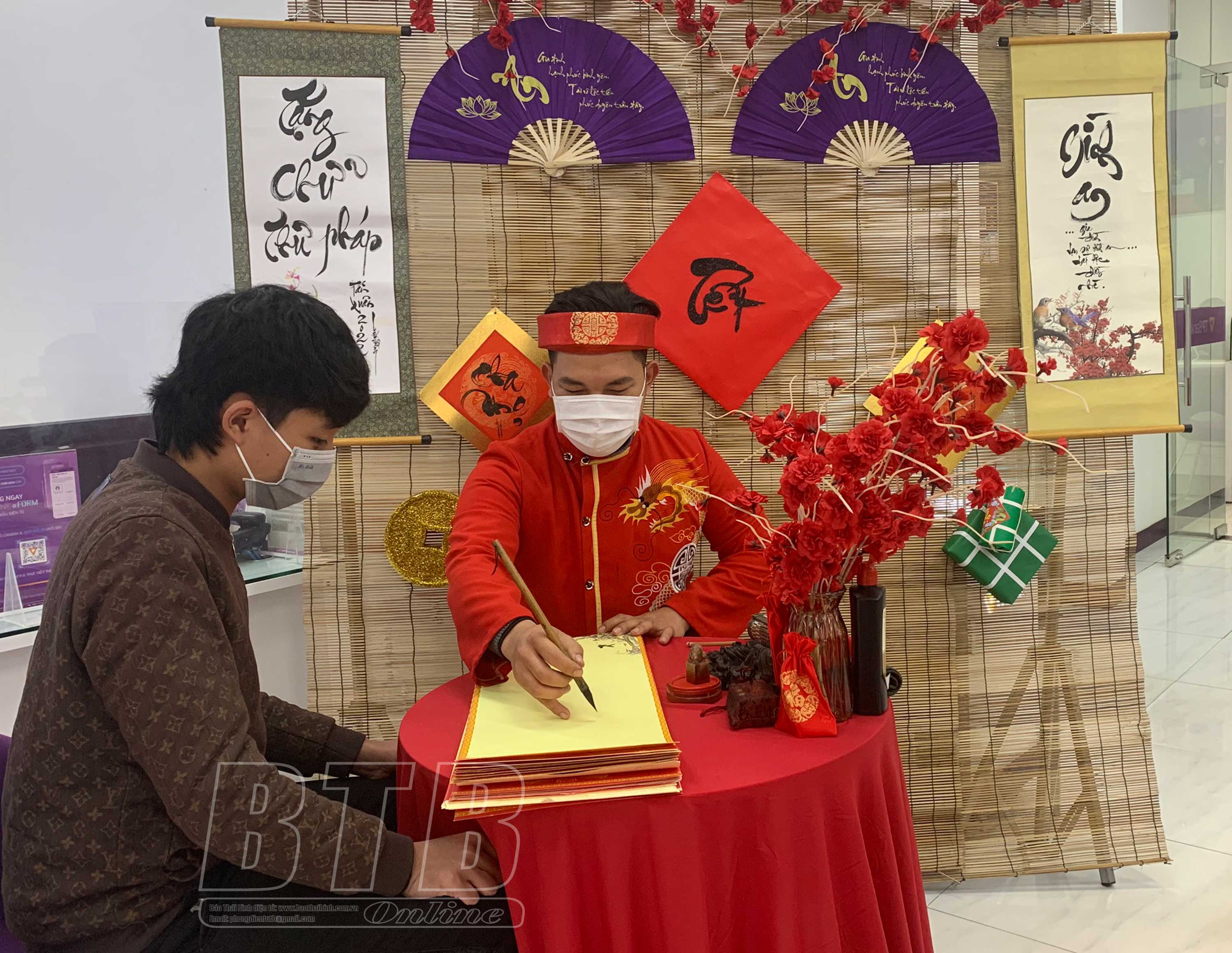 Trần Văn Hải, xã Tiến Đức (Hưng Hà) viết chữ tặng khách đầu năm mới.