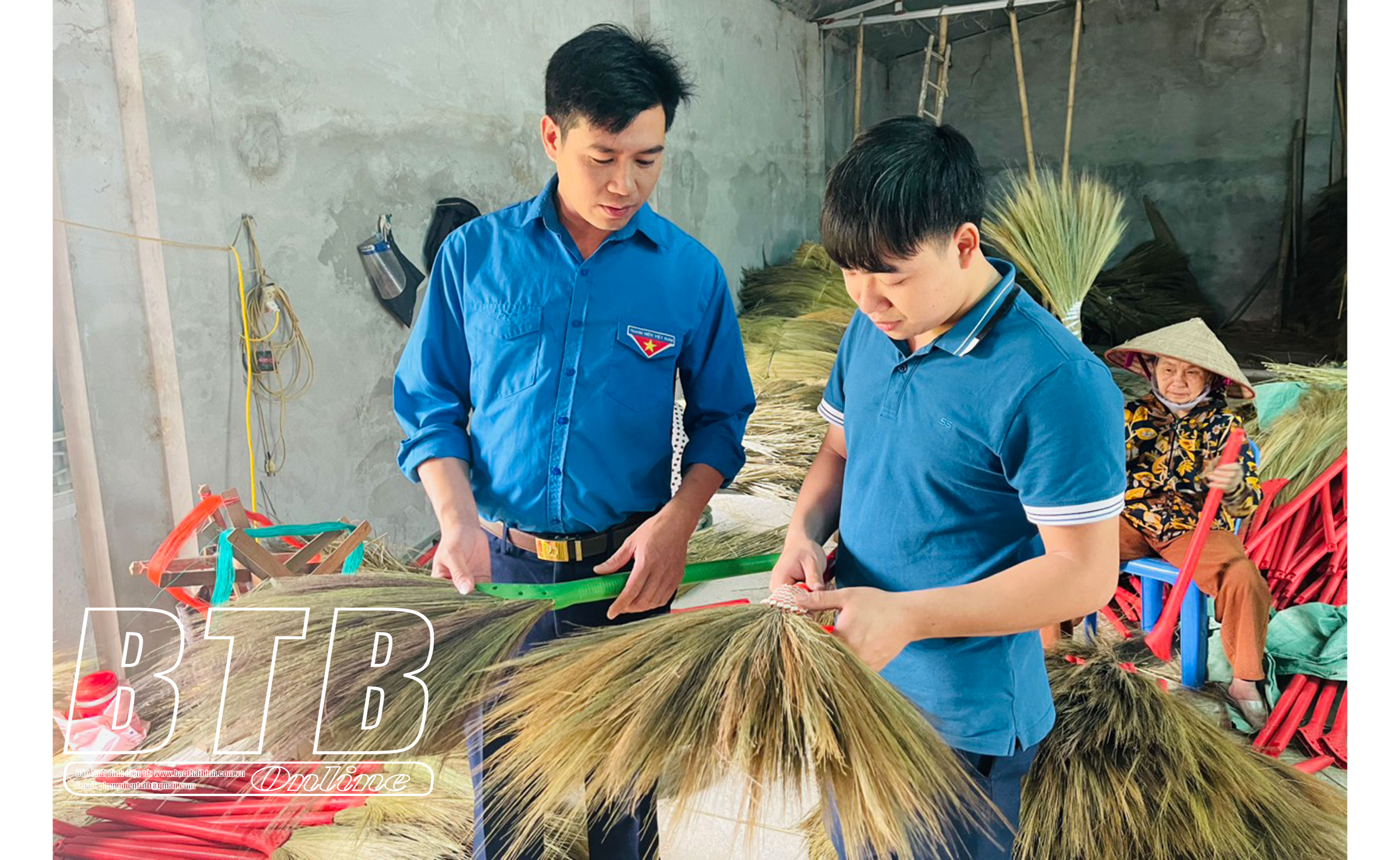 Thanh niên Nguyễn Văn Anh, xã Duyên Hải (Bên phải) làm giàu từ sản xuất chổi chít.