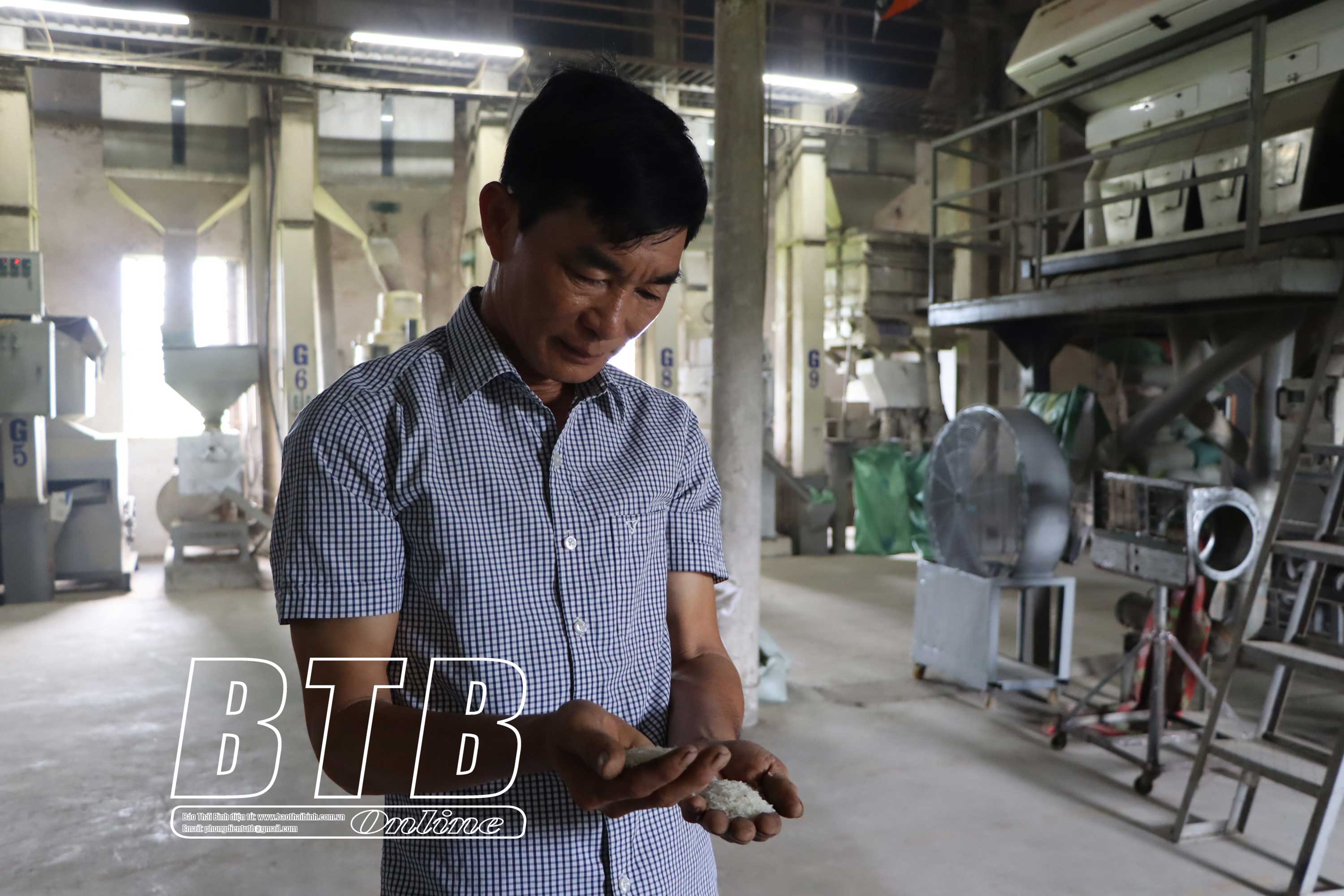 Để bảo đảm phát triển bền vững, năm 2016 tôi thành lập doanh nghiệp và ký hợp đồng cung ứng thóc cho Cục Dự trữ quốc gia. Yêu cầu đơn hàng phải đáp ứng nhiều tiêu chí như hạt thóc chắc mẩy, thủy phần đạt nên đòi hỏi công đoạn phơi sấy rất vất vả. Vì thế, một mặt tôi chủ động liên kết với các HTX trong huyện để thu mua 1.200 tấn thóc tươi/năm, mặt khác tôi đầu tư nhà xưởng, giàn sấy công suất 50 tấn/ngày đêm cùng các trang thiết bị hiện đại với chi phí gần 10 tỷ đồng. Nhờ đó, lượng thóc thu mua tới đâu được sấy khô ngay tới đó, kịp thời vụ, bảo đảm chất lượng.
