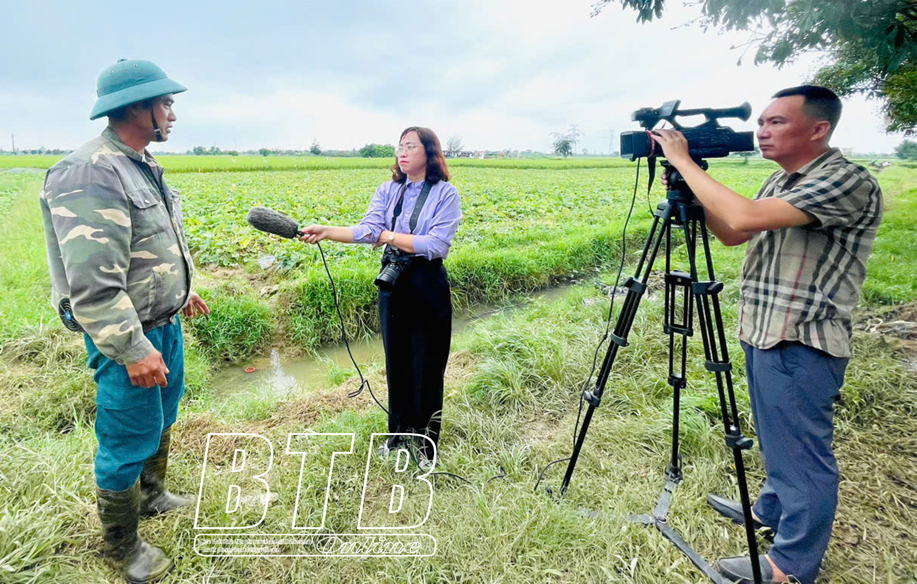 Phóng viên Báo Thái Bình tác nghiệp tại huyện Hưng Hà.