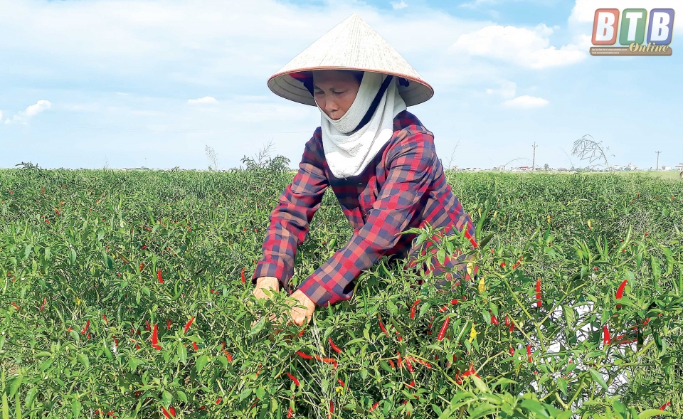 Qua giới thiệu của Phòng Nông nghiệp và Phát triển nông thôn huyện Kiến Xương, chúng tôi tìm về gia đình ông Nguyễn Văn Sơn, một trong những cá nhân mạnh dạn thuê đất cấy lúa, trồng ớt, thực hiện chủ trương tích tụ ruộng đất đang được các cấp, các ngành khuyến khích. Cầm chắc thắng lợi ở vụ đầu tiên thuê đất khi lúa đã đầy bồ, ớt cho năng suất cao, vụ mùa này, ông Sơn thuê thêm gần 4ha, tiếp tục mở rộng diện tích sản xuất.