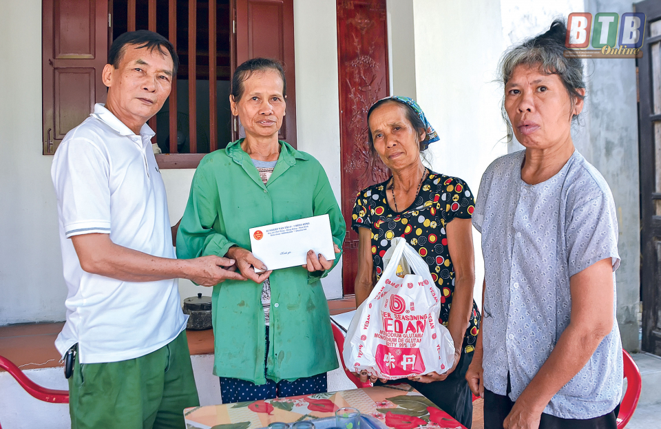 Cựu chiến binh Phạm Ngọc Sơn tặng quà gia đình cựu thanh niên xung phong Trần Thị Tỳ.