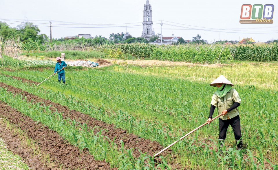 Nông dân xã Bình Nguyên (Kiến Xương) chăm sóc cây vụ đông.