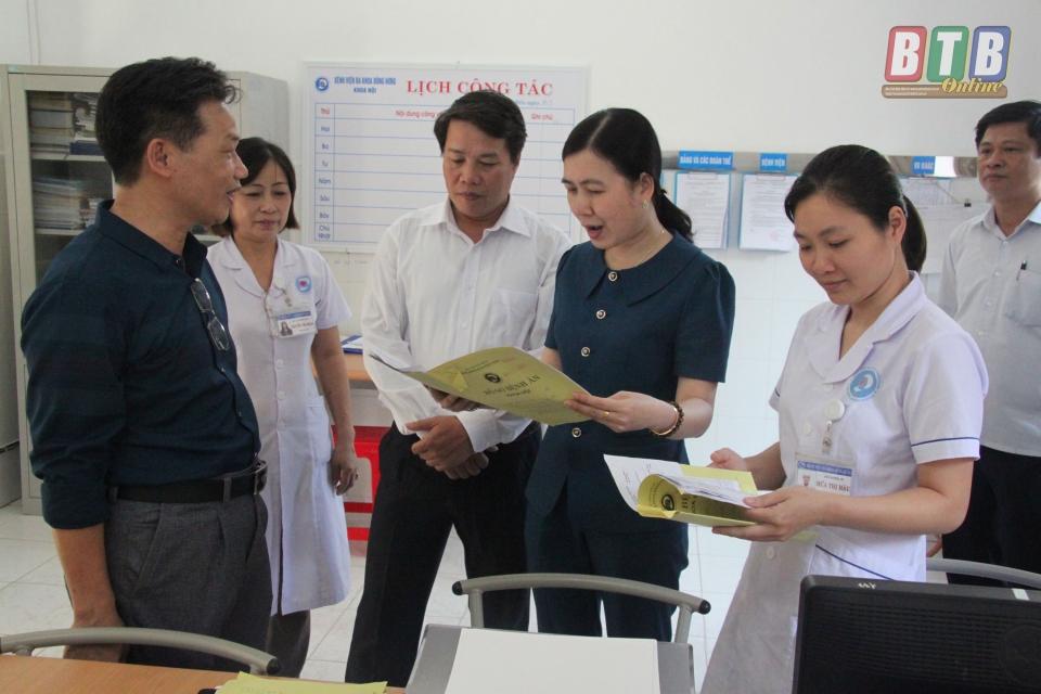 Đoàn giám sát của Ban Văn hóa - Xã hội, HĐND tỉnh giám sát tại Bệnh viện Đa khoa huyện Đông Hưng.