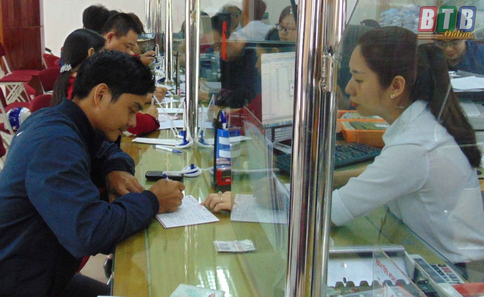 Giao dịch ở Ngân hàng Nông nghiệp và Phát triển nông thôn Chi nhánh huyện Hưng Hà.