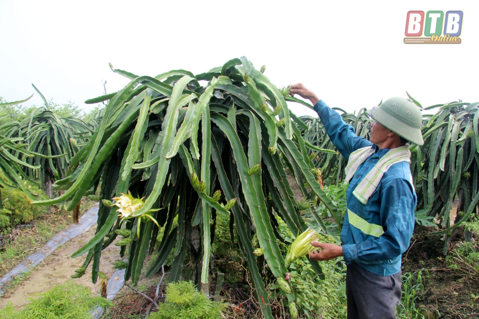 Mô hình trồng thanh long ở xã An Châu, huyện Đông Hưng.