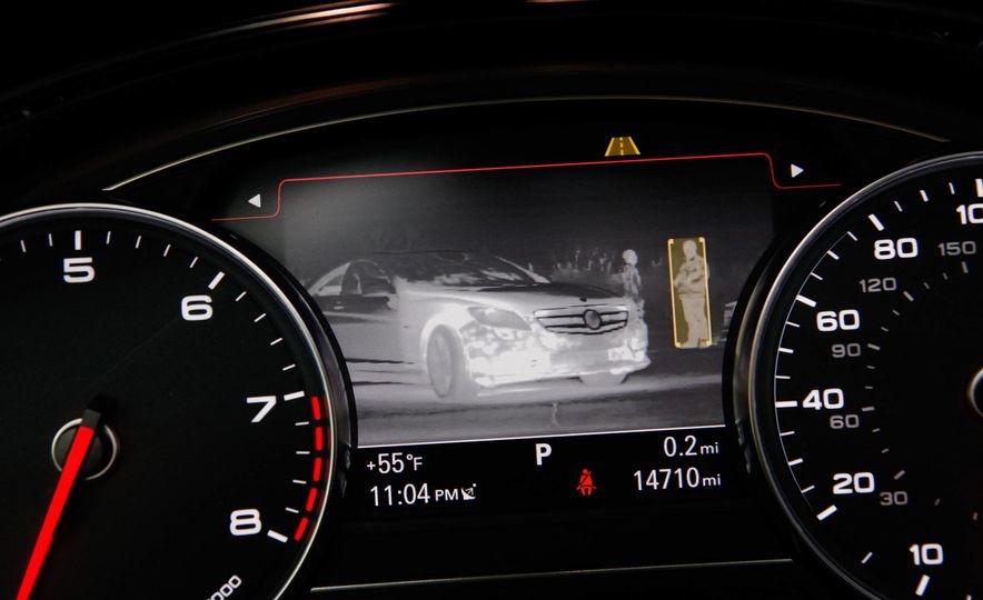 Không nhiều mẫu xe có hệ thống nhìn đêm do công nghệ này vẫn còn khá đắt đỏ. Tuy nhiên, trên các mẫu xe hạng sang, camera hồng ngoại có thể quan sát hình ảnh xa hơn tầm chiếu của đèn pha khi di chuyển ban đêm, thậm chí có thể thấy cả người hoặc động vật trên màn hình. Tất nhiên, người lái không thể tắt đèn pha ban đêm chuyển sang hệ thống nhìn đêm. Không nhà sản xuất nào muốn điều này bởi rõ ràng không đảm bảo an toàn.